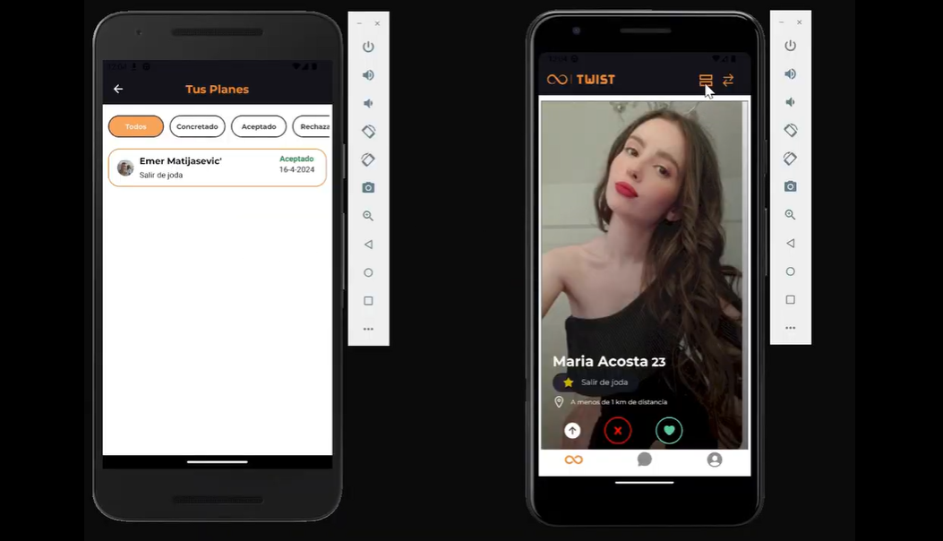 El proyecto fue realizado en conjunto a 4 compañeros de la universidad donde asistí como proyecto de tesis final. Se trata de una app mobile inspirada en tinder para la conexion de personas con los mismos intereses. Fui el encargado de realizar las animaciones y mejorar la UX de la aplicacion. Se utilizó para su desarrollo : [Expo - ReactNative - LottieFiles - CommetChat] [ Java - Next.js - Firebase]